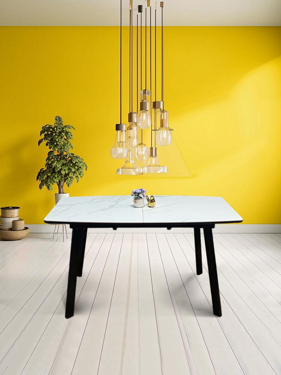 Стол KENNER AА1400 цвет черный, керамическая столешница. Очень функциональный и удобный стол на надежном металлическом основании. Столешница с безопасными, скругленными краями, металлическая рама, которая полностью прячется под столешницей и оставляет максимальное место для ног, надежные и устойчивые опоры из стального профиля размером 60*30 мм, которые расположены таким образом, что позволяют поставить 2 больших стула по широкой стороне стола и 1 широкий стул по узкой стороне стола. Оптимальный выбор для современной кухни