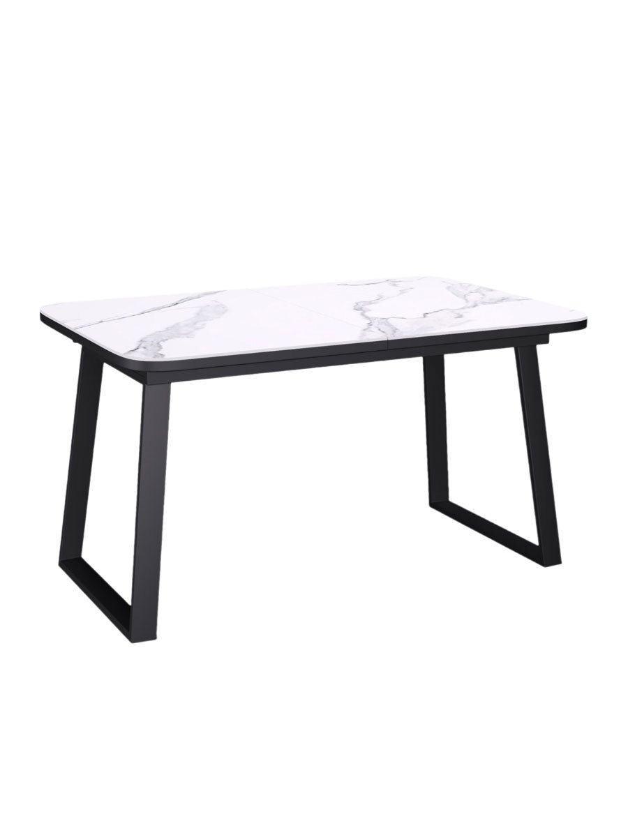 Стол KENNER AZ1200 цвет черный, столешница – керамика мрамор белый. Стильные, дизайнерские столы для дома. Фабрика “Кеннер”. Гарантия качества. Быстрая доставка по РФ. Очень функциональный и удобный стол на надежном металлическом основании. Столешница с травмобезопасными, скругленными краями, металлическая рама, которая полностью прячется под столешницей и оставляет максимальное место для ног, надежные и устойчивые опоры из стального профиля размером 60*30 мм, которые расположены таким образом, что позволяют поставить 2 больших стула по широкой стороне стола и 1 широкий стул по узкой стороне стола. Оптимальный выбор для современной кухни
