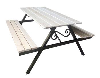 Этот дачный стол со скамейками станет прекрасным дополнением к любому открытому пространству. Он имеет красиво обработанную деревянную столешницу, которая придает дизайну нотку естественной элегантности, а прочный металлический каркас обеспечивает долговечность и надежность. Прямоугольная форма стола позволяет удобно разместить 4-6 человек, что делает его идеальным для отдыха в большом кругу семьи и друзей. Скамейки идут в одной конструкции со столом, обеспечивая целостный и стильный вид. Сочетание дерева и металла создает вневременную и универсальную эстетику, которая может легко дополнить различные стили наружного декора. Этот дачный стол со скамейками обязательно сделает ваши посиделки на свежем воздухе незабываемыми.