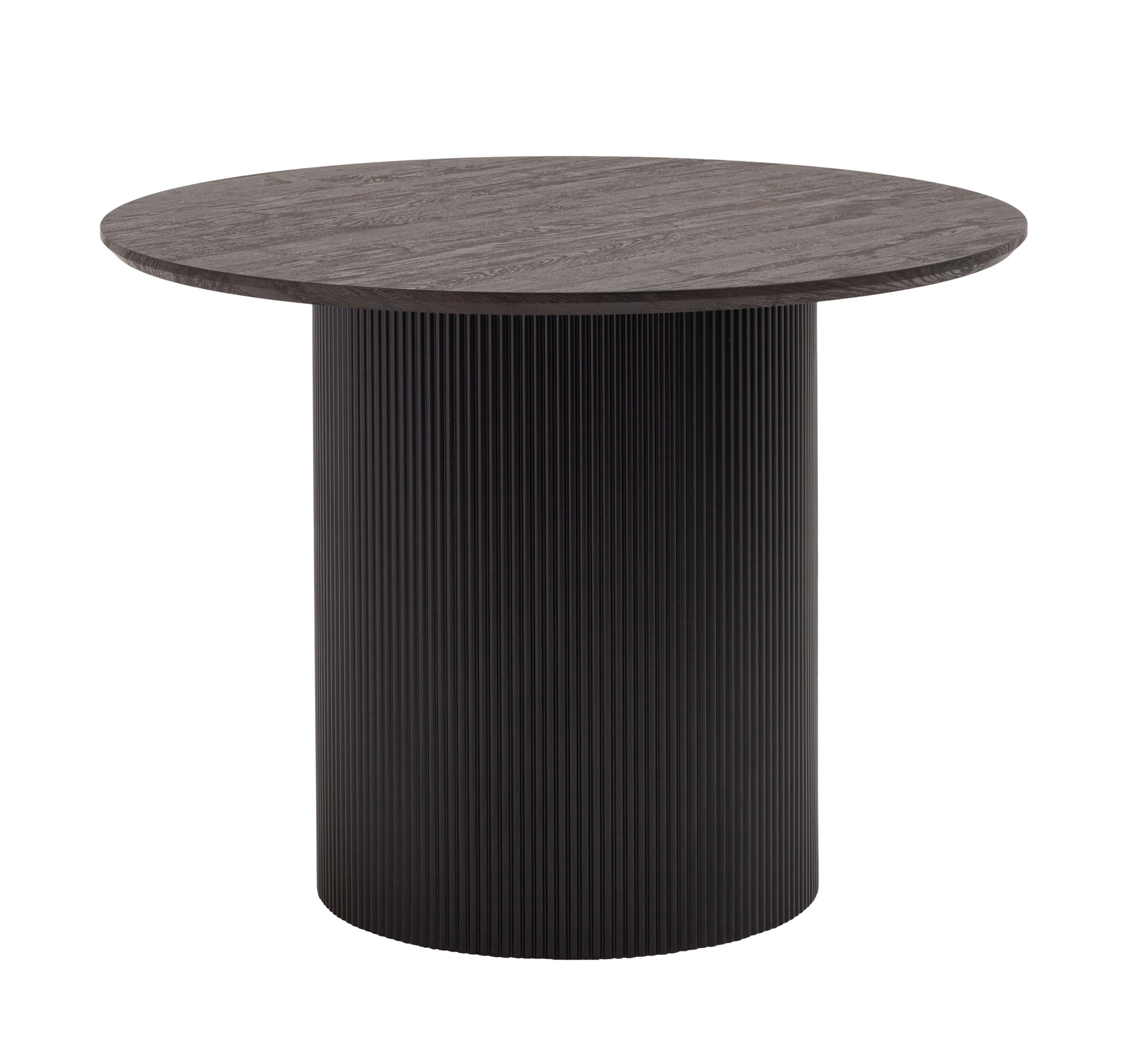 Столешница выполнена из прочного и долговечного МДФ. Светлая поверхность столешницы гармонично сочетается с массивной основой серого цвета. Простая круглая форма стола позволит легко вписать его в современный интерьер, стол украсит кухню, гостиную или современное кафе, ресторан. Опорное плиссированное основание стола в лаконичном дизайне надёжно удерживает всю конструкцию и дополняют монолитный образ.
