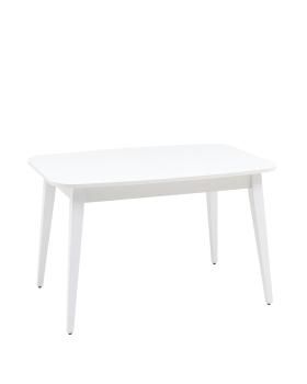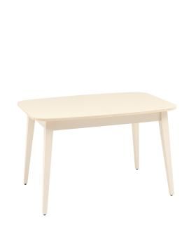 Прямоугольная столешница изготовлена из ЛДСП и покрыта слоем матового стекла. Покрытие очень простое в уходе, не впитывает жидкость и устойчивое к перепадам температуры. Квадратные ножки из массива дерева оснащены черными подпятниками, которые защищают напольное покрытие от царапин и препятствуют скольжению.