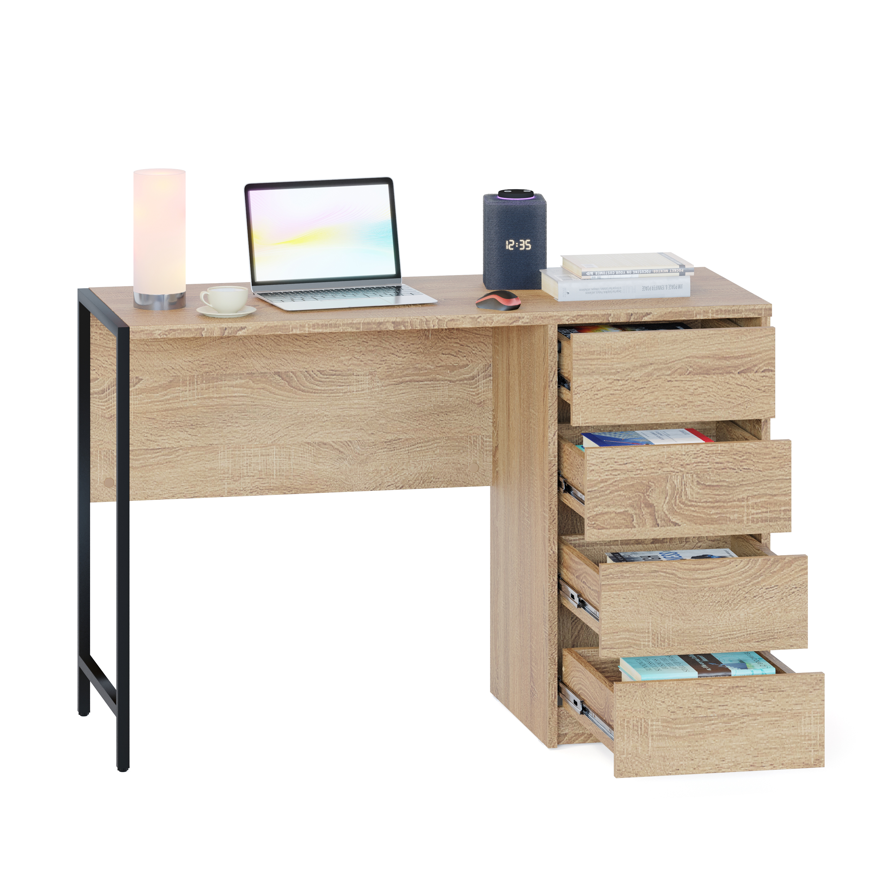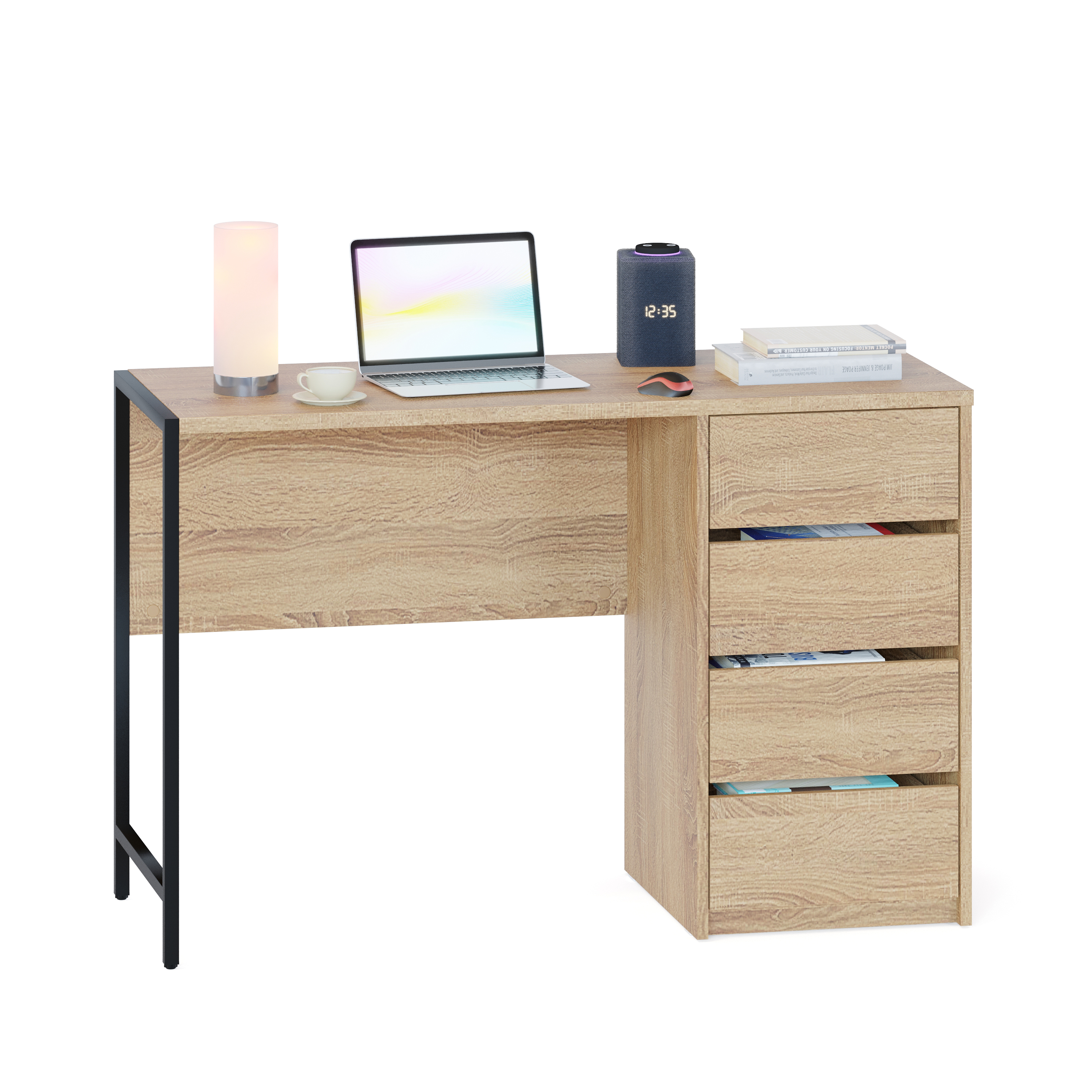 Стол письменный Сокол СПМ-405 является отличным вариантом для создания полноценного рабочего пространства, эффективно используя доступное место в вашем доме или офисе. Благодаря оригинальному дизайну с металлическими опорами на регулируемых ножках и столешнице толщиной 22 мм с противоударной кромкой, этот стол создает современную атмосферу в стиле лофт.