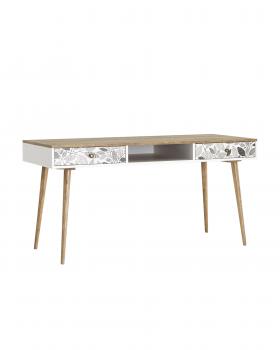 Рабочий стол “Berber” отлично впишется в рабочий кабинет или детскую комнату. Под столешницей, выполненной из ЛДСП, размещены два вместительных ящика на металлических направляющих и ниша под бумаги и мелочи. Ножки изготовлены из массива ясеня и покрыты итальянской морилкой.