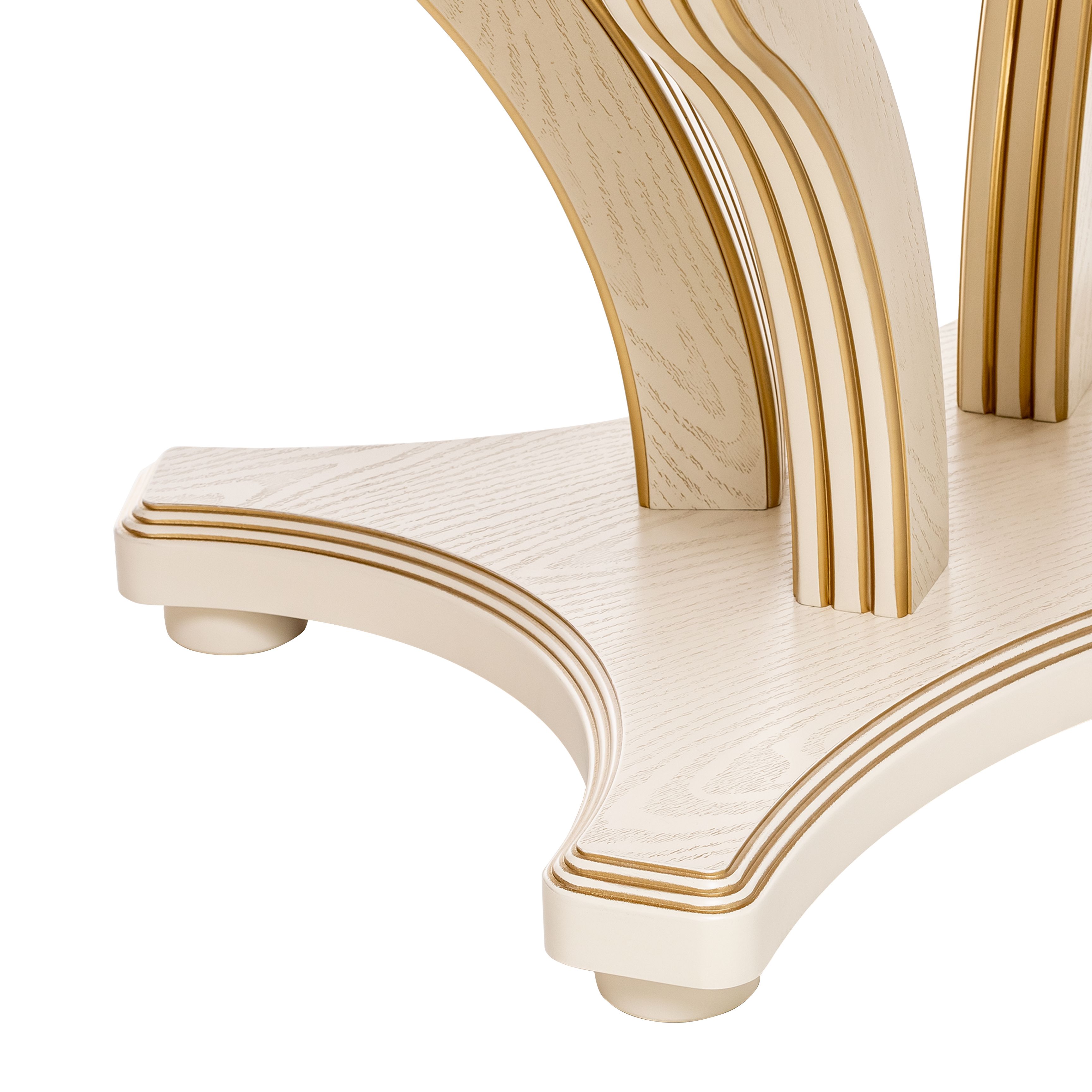 Красивый, компактный и вместительный обеденный стол Ромео – элегантная новинка коллекции обеденных групп Leset. Фигурное основание стола для кухни и опоры из массива бука украшены античной резьбой, круглая столешница столика из шпонированного МДФ подчеркивает стильное решение.