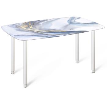 Столешница выполнена из закаленного стекла с ультрафиолетовой печатью. Одним из главных преимуществ закаленного стекла является его стойкость к высоким температурам, вибрационным нагрузкам, ударам и царапинам. Также стекло обладает высокой ударной вязкостью – энергия от столкновения с бьющим предметом распределяется относительно продолжительное время (по сравнению с обычным стеклом), что приводит к разрушению на очень мелкие осколки. Стекло закреплено на МДФ с отступом 50 мм.