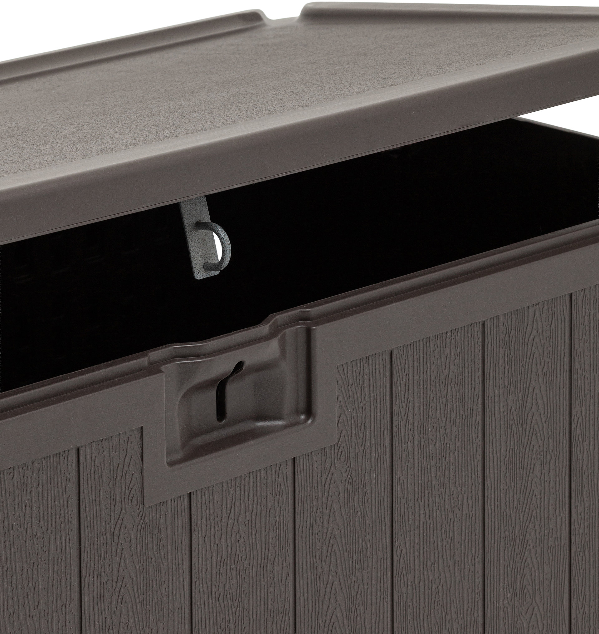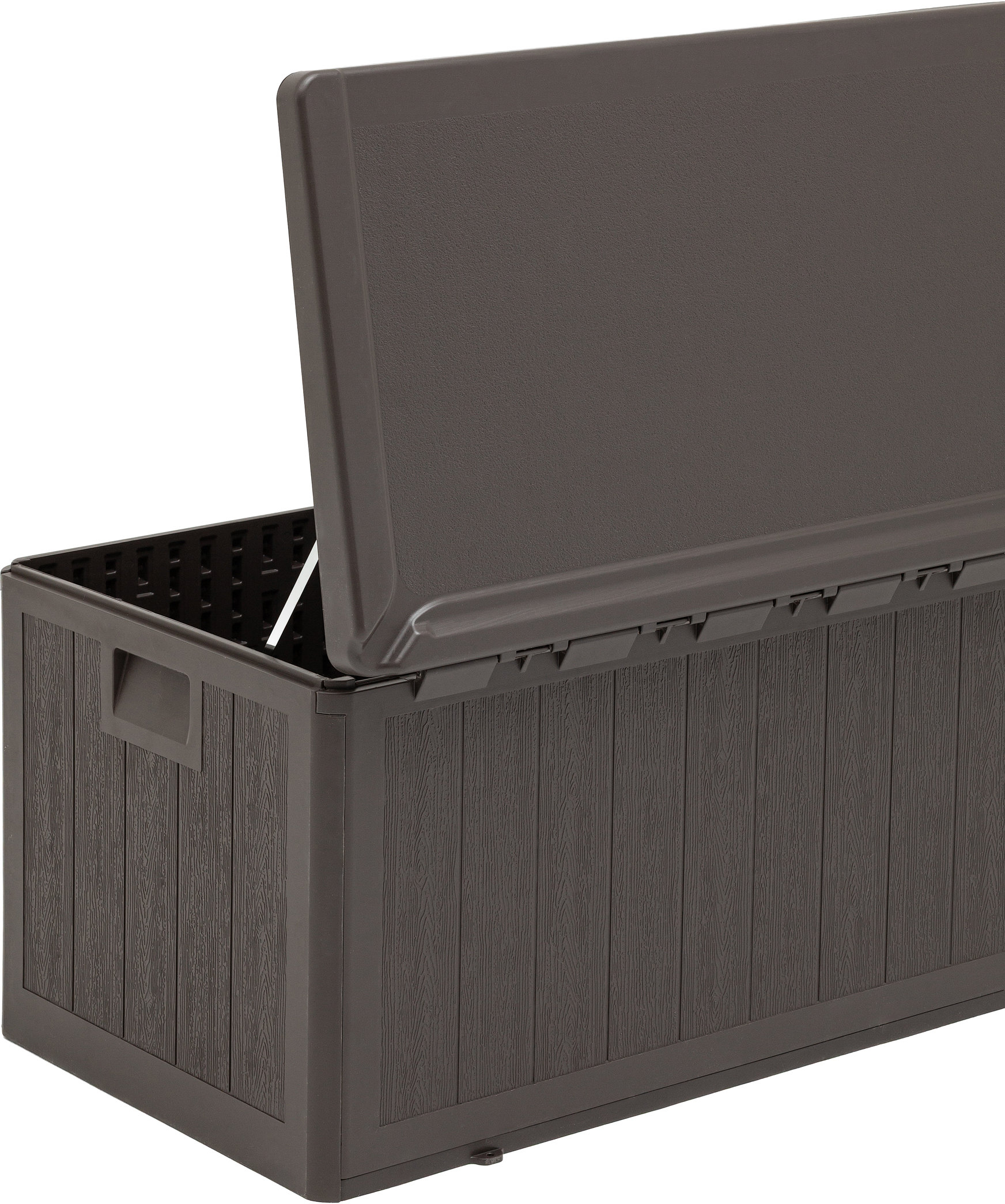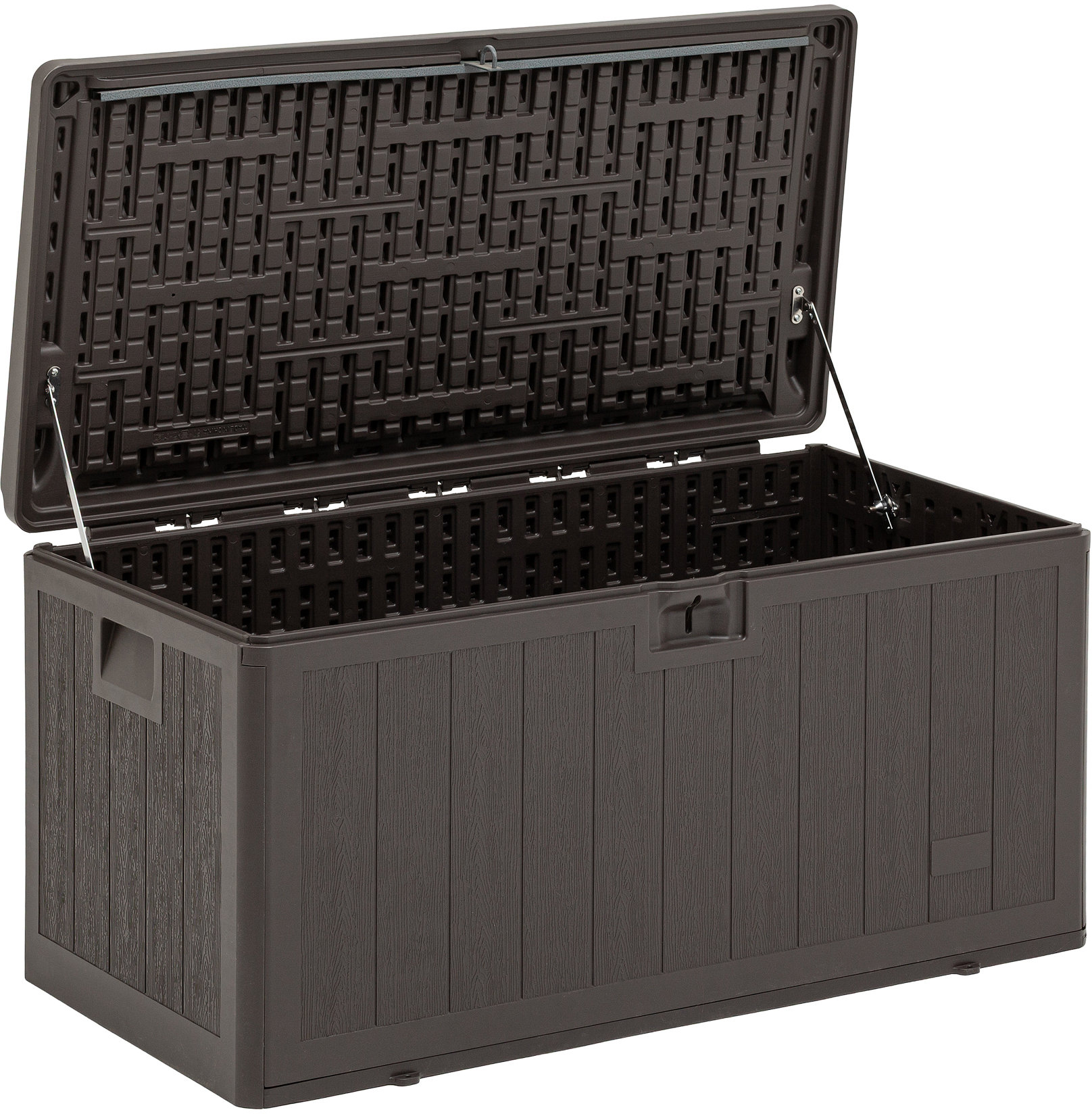Внутренние габариты изделия — 43 × 97 × 47 см — делают его удобным для повседневного использования без ущерба для полезного пространства. Коричневый цвет придает изделию универсальный и аккуратный внешний вид, который гармонично вписывается в интерьер дома и экстерьер дачного участка.