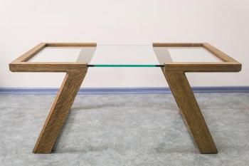 Стол журнальный из проекта “INVENTALL”. Массив ясеня, масло с тонировкой. Каленое стекло AGC 10мм.