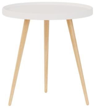 Столешница выполнена в белом цвете, имитируя поверхность подноса — стильное и полезное решение для гостиной или зоны отдыха. Ножки из натуральной берёзы придают изделию экологичность и природную привлекательность. Лаконичная форма и минималистичный дизайн позволяют легко вписать стол в современное пространство.