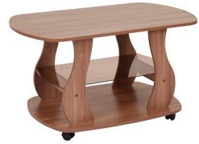 • Практичная конструкция – стол состоит из основной части на колесных опорах и удобной полки из стекла, где можно разместить журналы, книги или декоративные элементы.