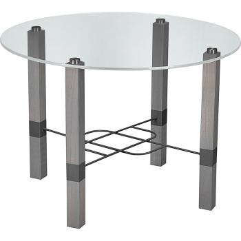 Авторский столик с круглой столешницей из стекла, оригинальной стальной полочкой–сеткой с ажурным переплетом, на которую можно положить стопку любимых журналов. Полочка одновременно несет в себе и конструктивную нагрузку и дополняет ножки квадратного сечения из массива бука пикантными вставками из крашенного металла. Ножки столика тонированы серым цветом и не скрывают текстуру натурального дерева. Столик великолепно подойдет для оформления рекреационных зон, зон ожидания гостиниц, банков, торговых центров, сервисных учреждений, где всегда есть необходимость в дополнении обстановки элегантными и функциональными малыми формами. Данный столик – идеальный вариант для решения таких задач. Надежный, гигиеничный, функциональный, эксклюзивный.