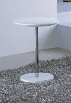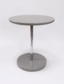 Стол журнальный с круглой деревянной столешницей. Столешница имеет круглую форму — мебельная плита МДФ, покрытая глянцевой эмалью. Металлическая опора — хромированная.
