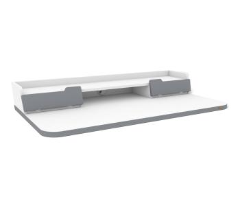 На рабочей поверхности расположены два вместительных выдвижных ящика высотой 165 мм и шириной 318 мм для хранения разных вещей. Так же высота ящика позволяет устанавливать монитор на уровне глаз, что повышает комфорт спины/шеи для работы. Специальная ниша между ящиками идеально подходит для ноутбука. Столешница оборудована системой кабель-менеджмента. В заднем бортике имеется отверстие для проводов, что позволяет удобно расположить зарядку для ноутбука или технические кабели компьютера.