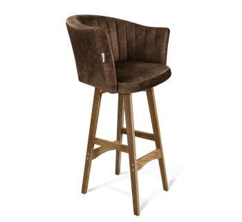 Такой стул станет ярким акцентом любой барной зоны в кафе, ресторане или дома. Дизайн выполнен в актуальном эко-стиле: каркас из натурального дерева, обивка сидения приятного кофейного оттенка.