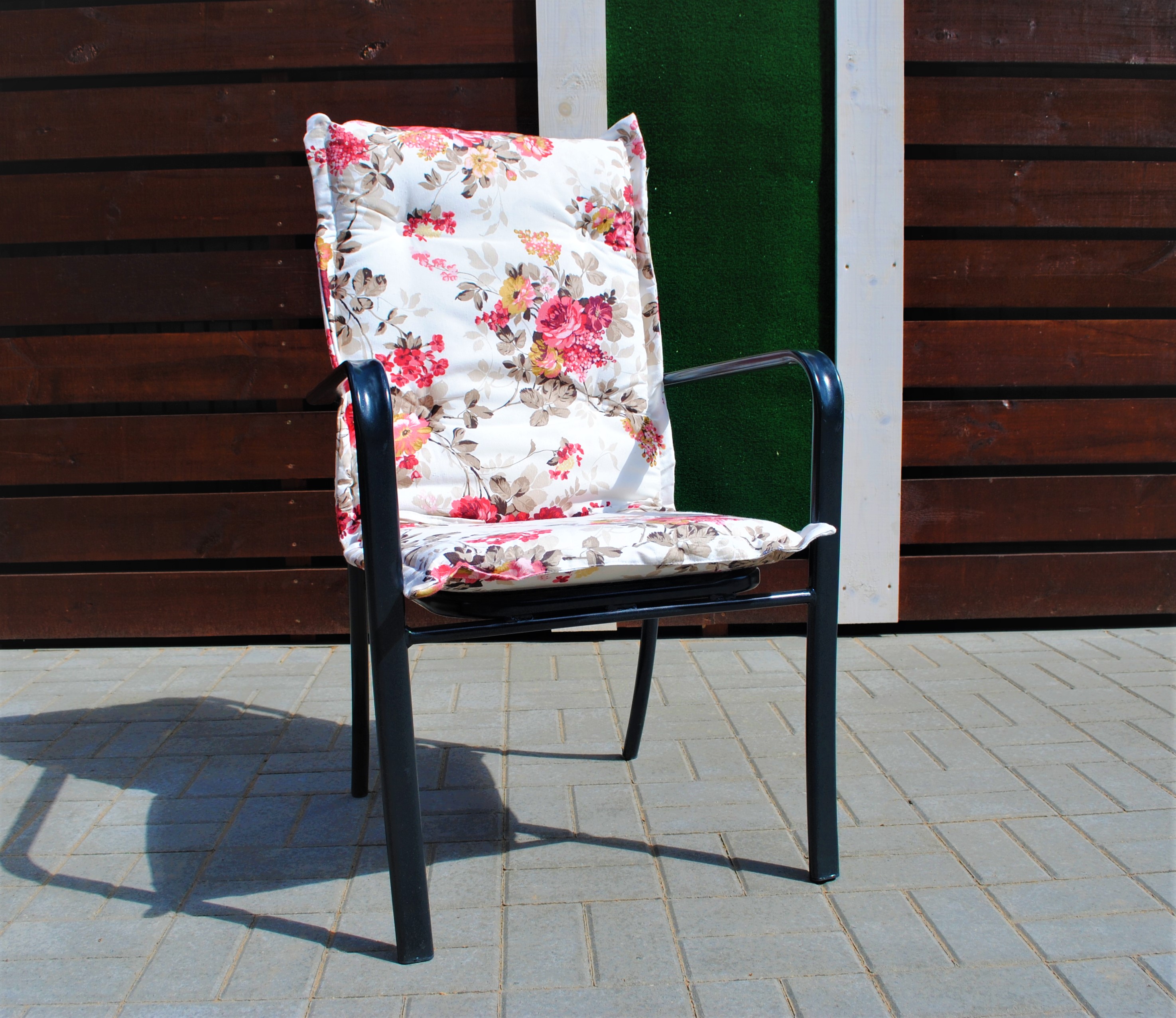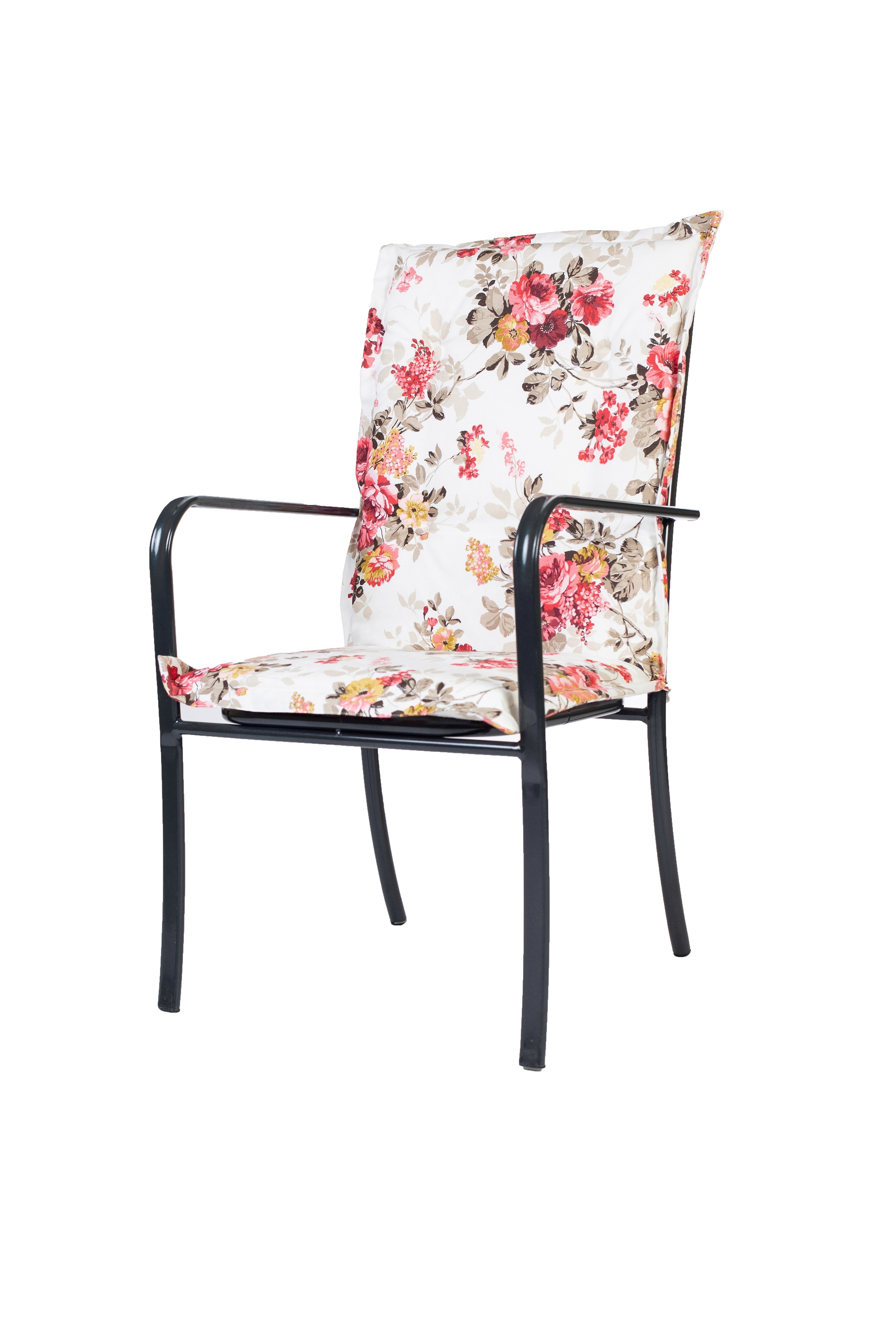 Эргономичная форма с подлокотниками позволяет расслабиться после долгого дня, наслаждаясь свежим воздухом в своем саду. Черный цвет каркаса универсален и легко впишется в любой ландшафтный дизайн.