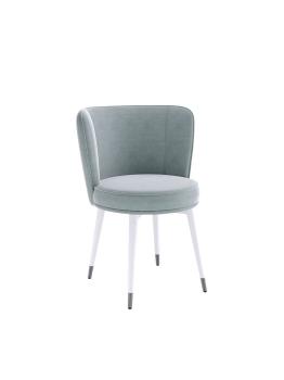 Каркас из толстой трубы равномерно утоньшается по всей длине опоры и оканчивается серебряным колпачком из сверхпрочной краски. Поворотный механизм позволяет не передвигать массивный стул, а просто поворачиваться на нем для того, чтобы удобно садиться и вставать из-за стола