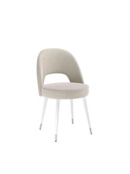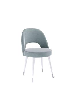 Каркас из толстой трубы равномерно утоньшается по всей длине опоры и оканчивается серебряным колпачком из сверхпрочной краски. Поворотный механизм позволяет не передвигать массивный стул, а просто поворачиваться на нем для того, чтобы удобно садиться и вставать из-за стола.