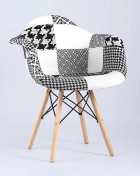 Кресло с подлокотниками в стиле EAMES, каркас из полипропилена обтянут тканью в стиле пэчворк, ножки – массив бука (массив+металл)