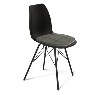 Сидение выполнено из полипропилена с армирующими добавками и выдерживает продолжительные нагрузки. По всей площади сидения толщина пластика варьируется от 5 мм до 8 мм из-за конструктивных особенностей. Подушка выполнена из высококачественного микровелюра, а в качестве наполнителя используется высокоэластичный ППУ. Металлический каркас покрыт порошковой краской, устойчивой к механическому воздействию (диаметр/толщина каркаса: 18/1,5 мм)