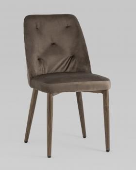 Прямые металлические ножки, стилизованные под темное дерево, имеют нестандартную форму в виде перевернутого конуса, поэтому обеспечивают хорошую устойчивость и делают стул оригинальным.