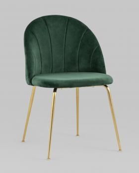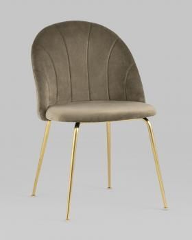 Сидение обтянуто мебельным велюром – приятным на ощупь износостойким, гигроскопичным материалом. Ткань обладает способностью быстро восстанавливать первоначальную форму после механического воздействия или намокания. Обивка на спинке имеет вертикальную стежку в виде веера. Дизайн стула дополняют металлические ножки золотого цвета.