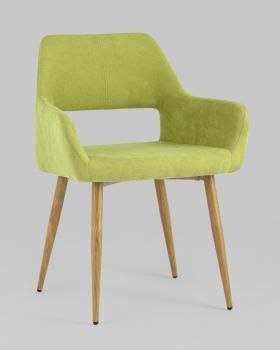 Стильный и мягкий кухонный стул имеет широкую эргономичную спинку и удобные подлокотники. Обивкой послужила высококачественная плотная ткань. Ножки металлические с принтом под дерево.