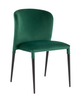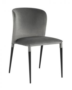 Обивка стула выполнена из велюра. Материал тактильно приятный, износостойкий, прост в уходе и быстро восстанавливает первоначальную форму. Ножки изготовлены из металла в черном цвете. Закругленная эргономичная спинка с выступающими по бокам элементами обеспечивает максимальный комфорт. На ножках предусмотрены специальные подпятники, которые предотвращают скольжение и не царапают напольное покрытие.