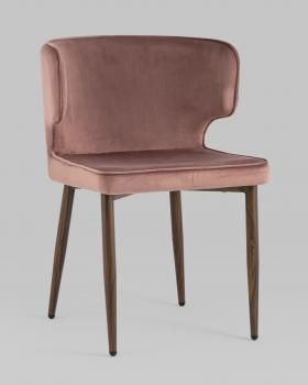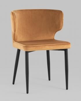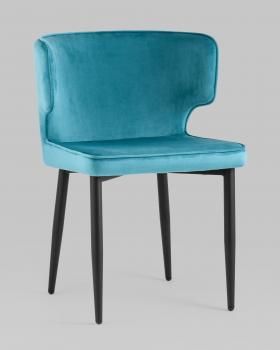 В качестве обивки используется велюр – прочный износостойкий материал. Прямые металлические ножки в черном цвете имеют нестандартную форму в виде перевернутого конуса, поэтому обеспечивают хорошую устойчивость и делают стул оригинальным.