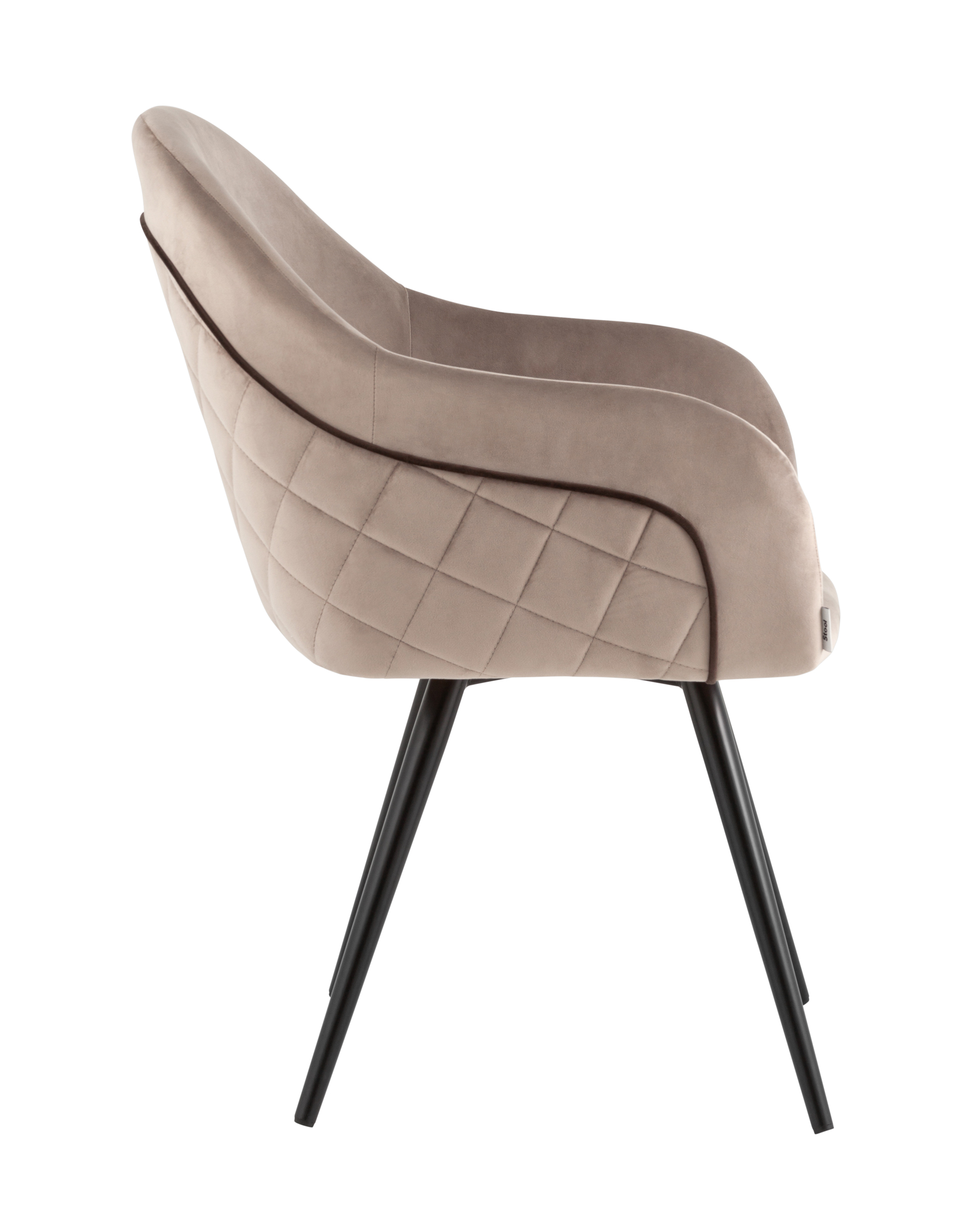 Обивка выполнена из велюра, прочного и износостойкого материала. Внешняя сторона спинки украшена ромбовидной стежкой. Подлокотники, высотой 20 см, обеспечат максимальный комфорт. Прочные металлические ножки выдерживают нагрузку до 120 кг. На ножках дополнительно предусмотрены специальные подпятники, которые предотвращают скольжение и повреждение напольного покрытия.
