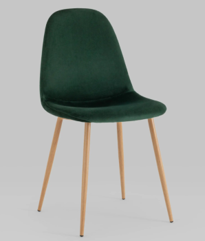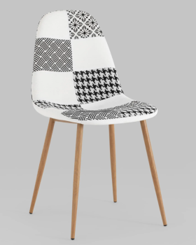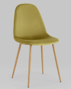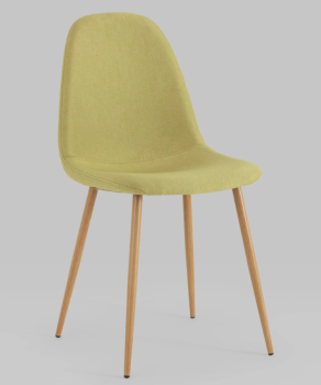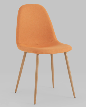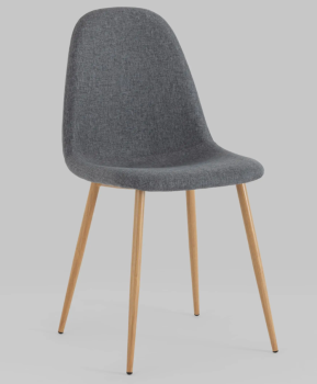Опора и ножки стула выполнены из металла, окрашенного в цвет натурального дерева.
