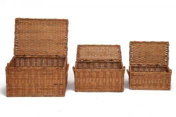 Комплект из трех сундуков из натурального ротанга Bonanza с крышками. Ротанг не гниёт, устойчив к изменению температуры и не выцветает на солнце поэтому сундуки прослужат вам долгие годы.