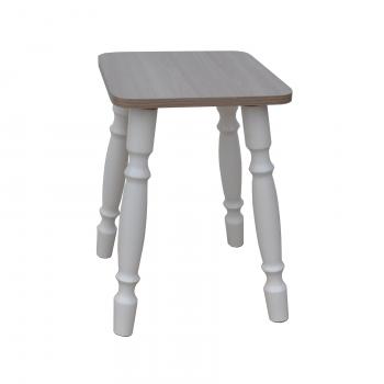 Сиденье изготавливается из ЛДСП с пластиковым покрытием, толщина 16 мм. Ножки фигурные, точеные, выполнены из массива дерева и покрыты стойким цветным лаком.