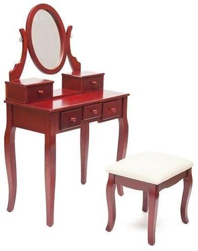 Туалетный столик с пуфом выполнен из натурального дерева.