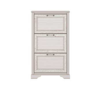 Высотой 140 сантиметров, а глубиной всего 20, такая тумба подойдет и для просторной прихожей, и для узкого коридора. В каждой из трех секций обувь размещается в один длинный ряд (65 см).