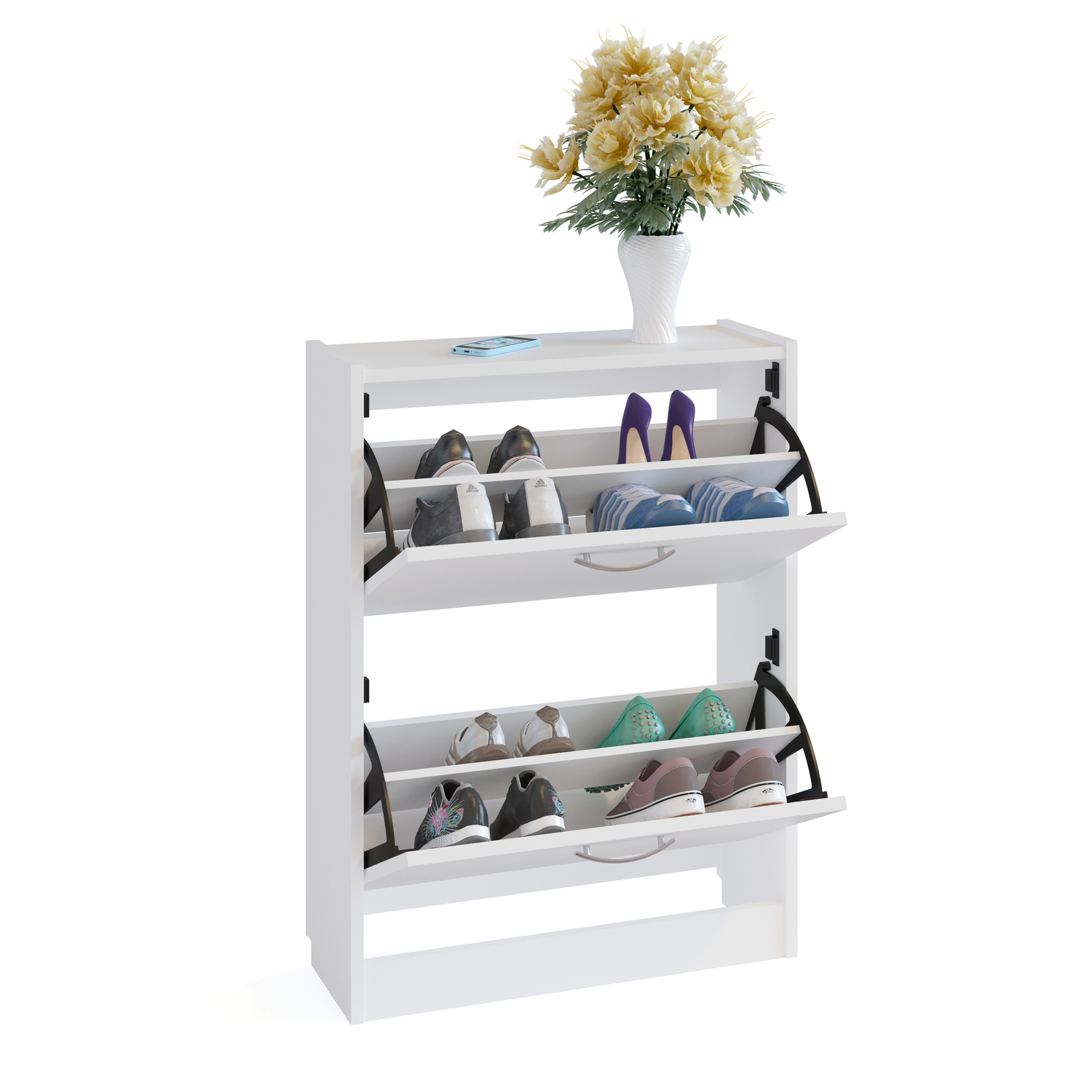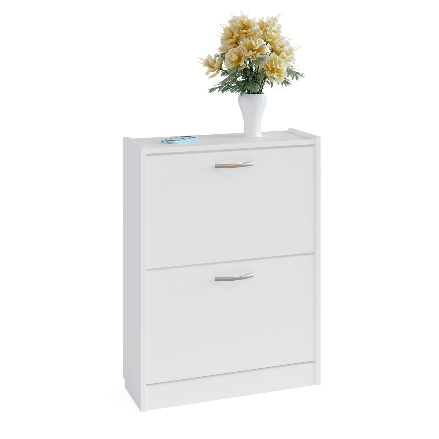 В конструкцию тумбы входят полки для обуви за дверцами.