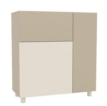 Современная тумба – комод 6-56012 с 2-мя распашными дверцами и выдвижным ящиком. За дверцами скрыты полки , ящик глубокий на направляющих полного выдвижения. Механизм открывания и закрывания Push-to-Open – нажатием.