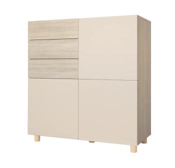 Современная тумба – комод 6-56017 с 3-мя распашными дверцами и 3-мя выдвижными ящиками. За дверцами скрыты полки , ящики глубокие на направляющих полного выдвижения. Механизм открывания и закрывания Push-to-Open – нажатием.