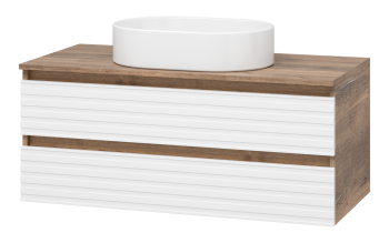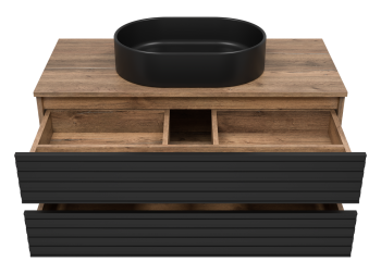В комплект входит раковина MILLEAU NUAGE MU0055B-GW 50, которая идеально сочетается с дизайном тумбы и обеспечивает удобство при использовании. Внутри корпуса — система хранения с двумя выдвижными ящиками. Ящики оснащены направляющими скрытого монтажа с доводчиками, что обеспечивает мягкое и бесшумное закрытие.