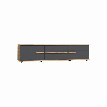 В гостиной CROWN длинная 3 Тумба ТВ может выступать как отдельный функциональный элемент, так и быть центром компоновки. На ней без труда поместится телевизор с диагональю до 60’‘. Две боковые ниши со сборными фасадами и центральный выдвижной ящик на шариковых направляющих – функциональное место для хранения. Все фасады коллекции облицованы ударопрочной кромкой ПВХ толщиной 2 мм. Гармонично дополнят тумбу трапециевидные ручки из массива с текстурой дерева в тон декора корпуса. Преимущество такой самодостаточной тумбы в том, что ее можно со временем дополнять полками и шкафами. Вариативность комбинаций тумбы с другими модулями коллекции как нельзя кстати для тех, кому быстро надоедает однообразие в обстановке.