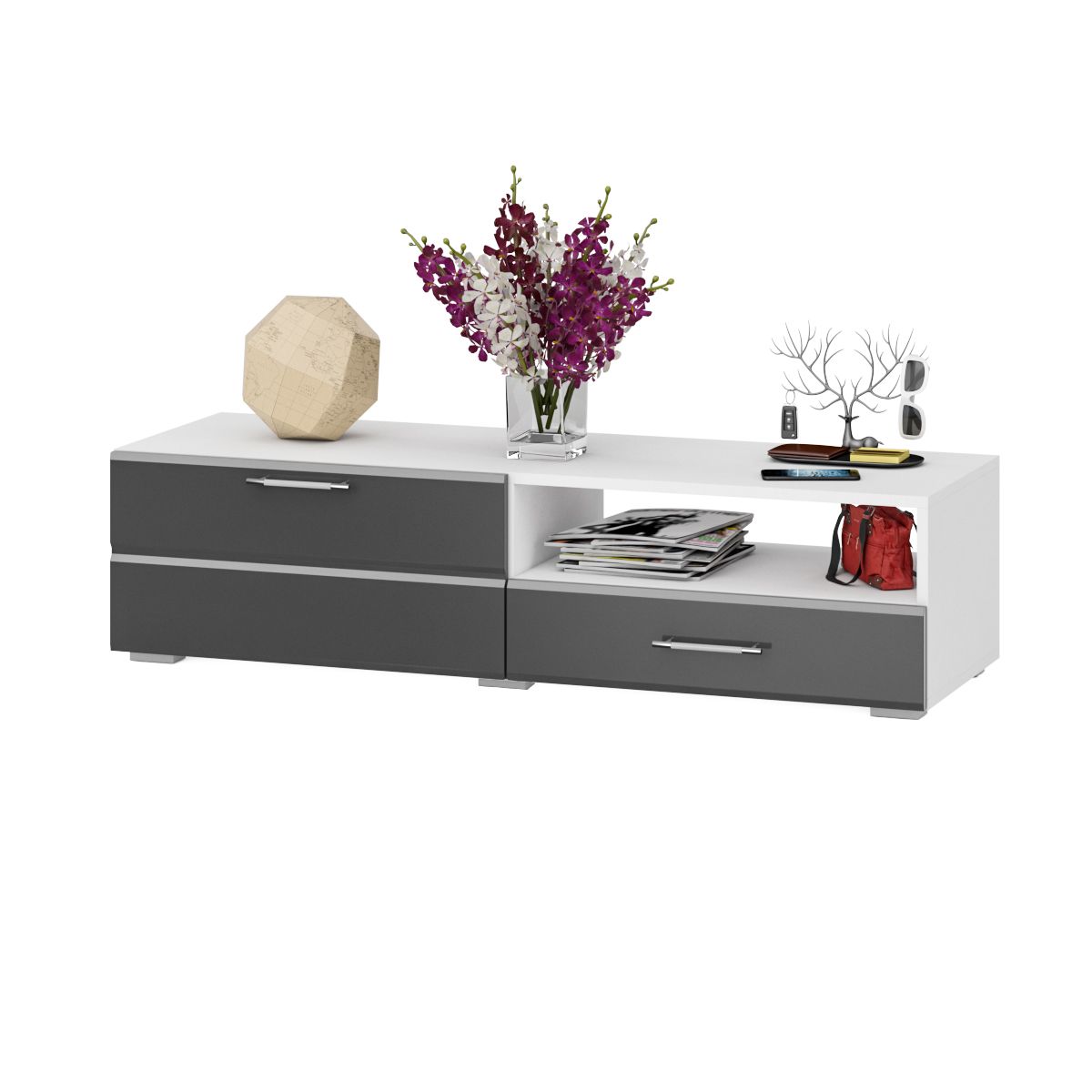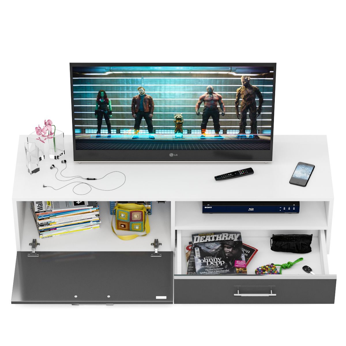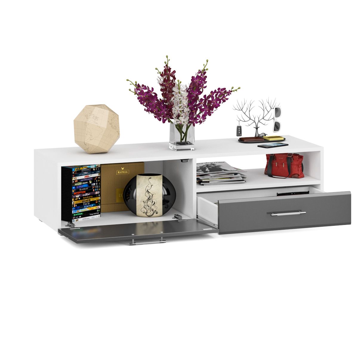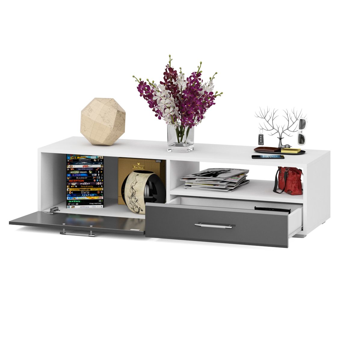 Тумба под ТВ Ларго 1,4. Размер (ШхГхВ) 140х46х35 см. Яркая, красивая тумба под ТВ придётся по вкусу любителям стильных элементов мебели в оформлении интерьера. Особый акцент данной модели – глянцевое покрытие фасадов, выполненных из МДФ 16 мм. с торцевой фрезеровкой в виде фацета и геометрическая фрезеровка откидной дверки.