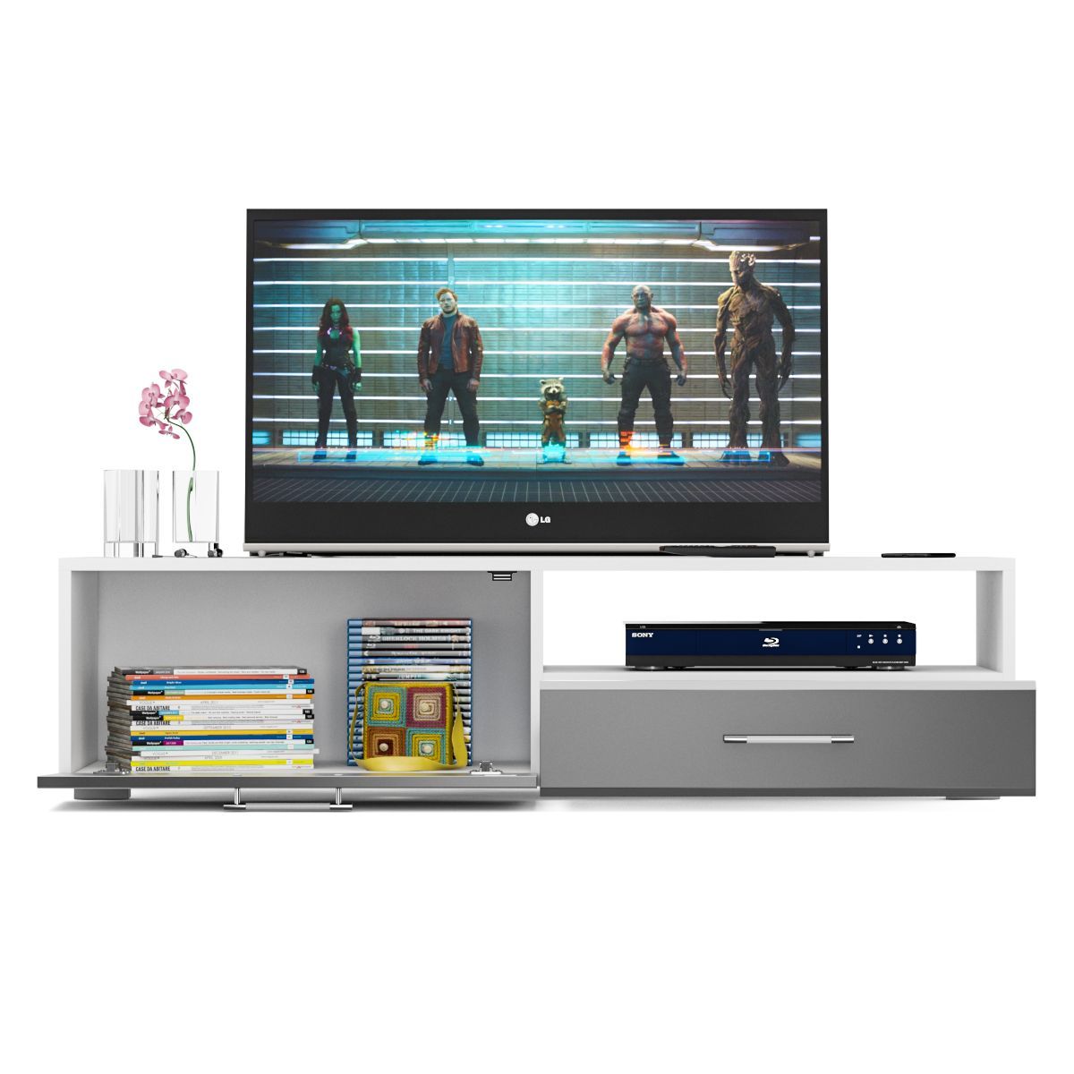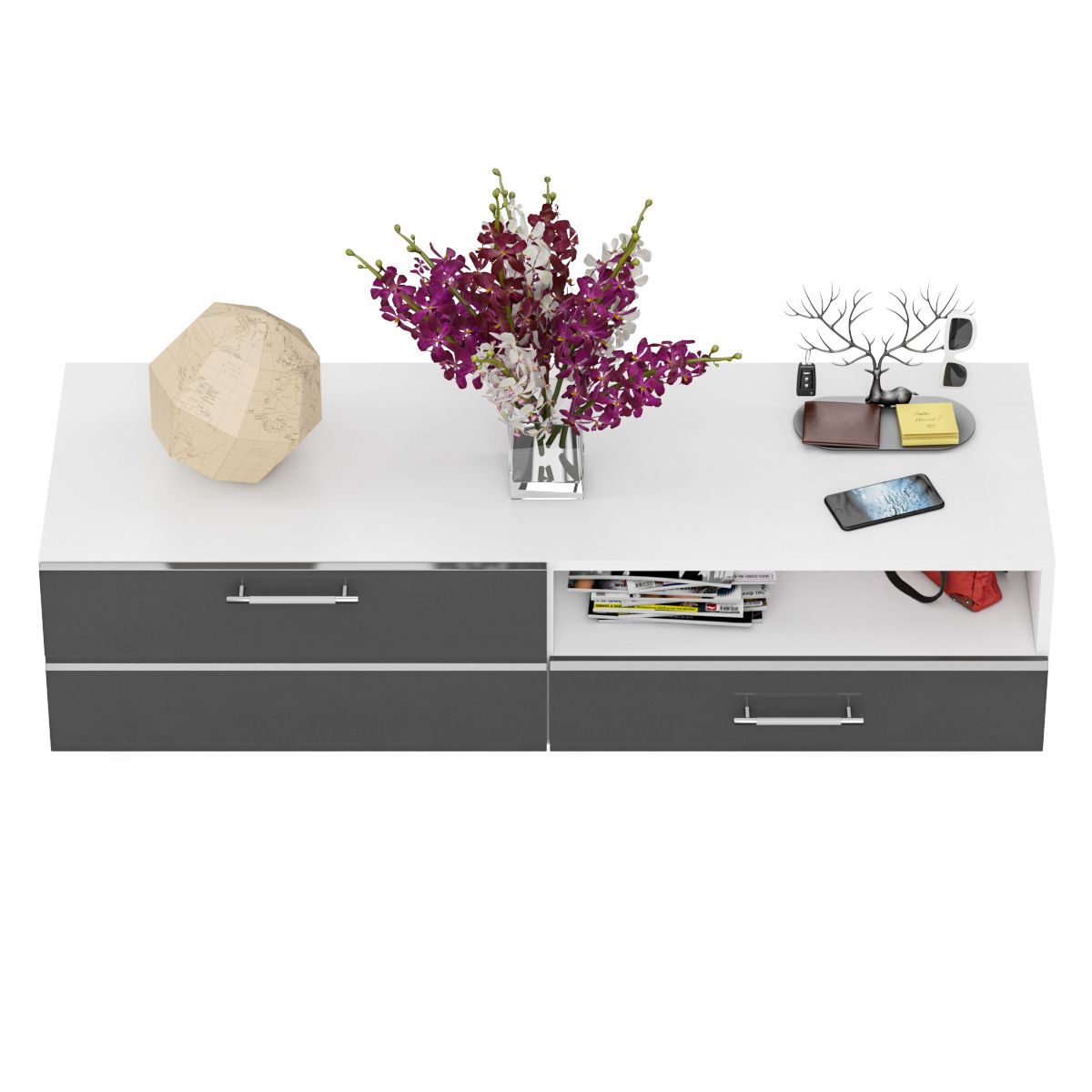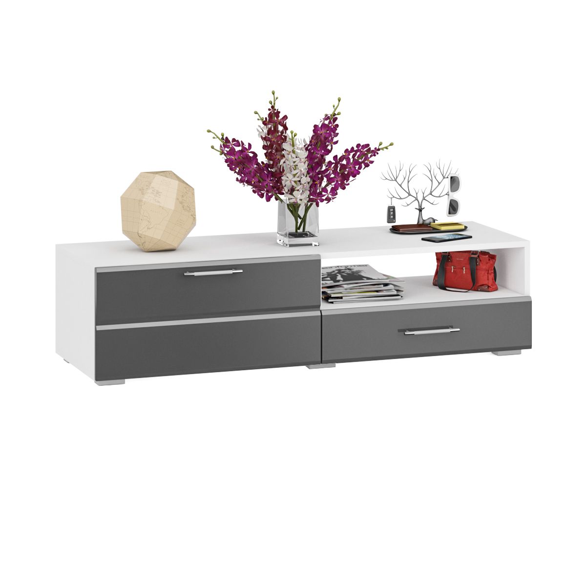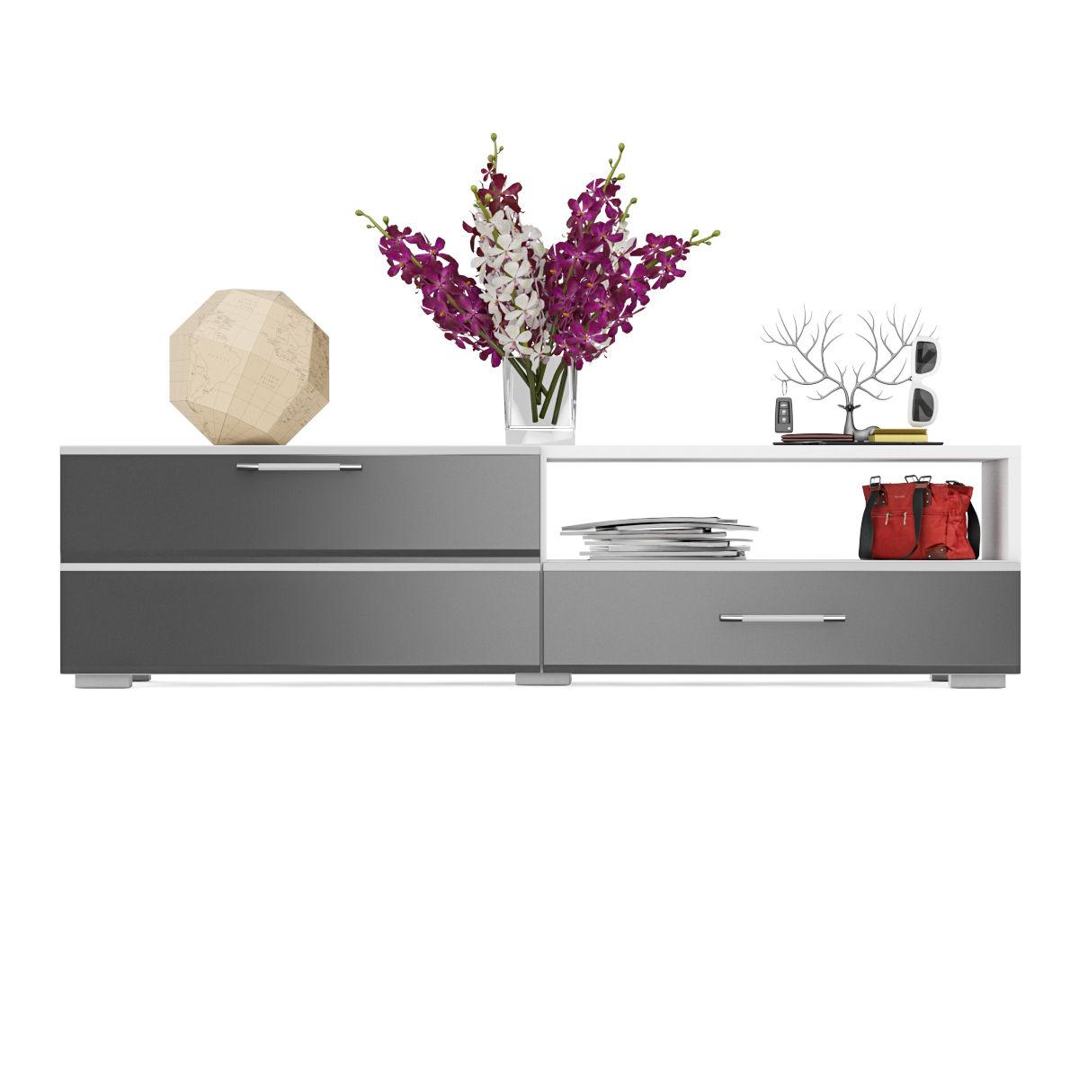 Тумба под ТВ Ларго 1,4. Размер (ШхГхВ) 140х46х35 см. Яркая, красивая тумба под ТВ придётся по вкусу любителям стильных элементов мебели в оформлении интерьера. Особый акцент данной модели – глянцевое покрытие фасадов, выполненных из МДФ 16 мм. с торцевой фрезеровкой в виде фацета и геометрическая фрезеровка откидной дверки.