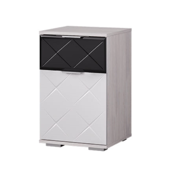 Прикроватная тумба “Кимберли” ТБ-02 украшена чёрным лакобелем с фацетом и гравировкой. Лакобель – это крашеное цветное стекло. Оно отличается от остальных видов стекла в способе производства – красят его лишь с одной стороны.