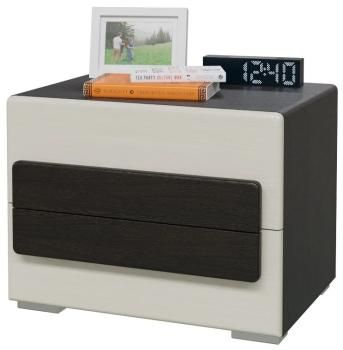 Компактная тумбочка с двумя выдвижными ящичками составит с кроватью идеальный дуэт – удобный и уютный.