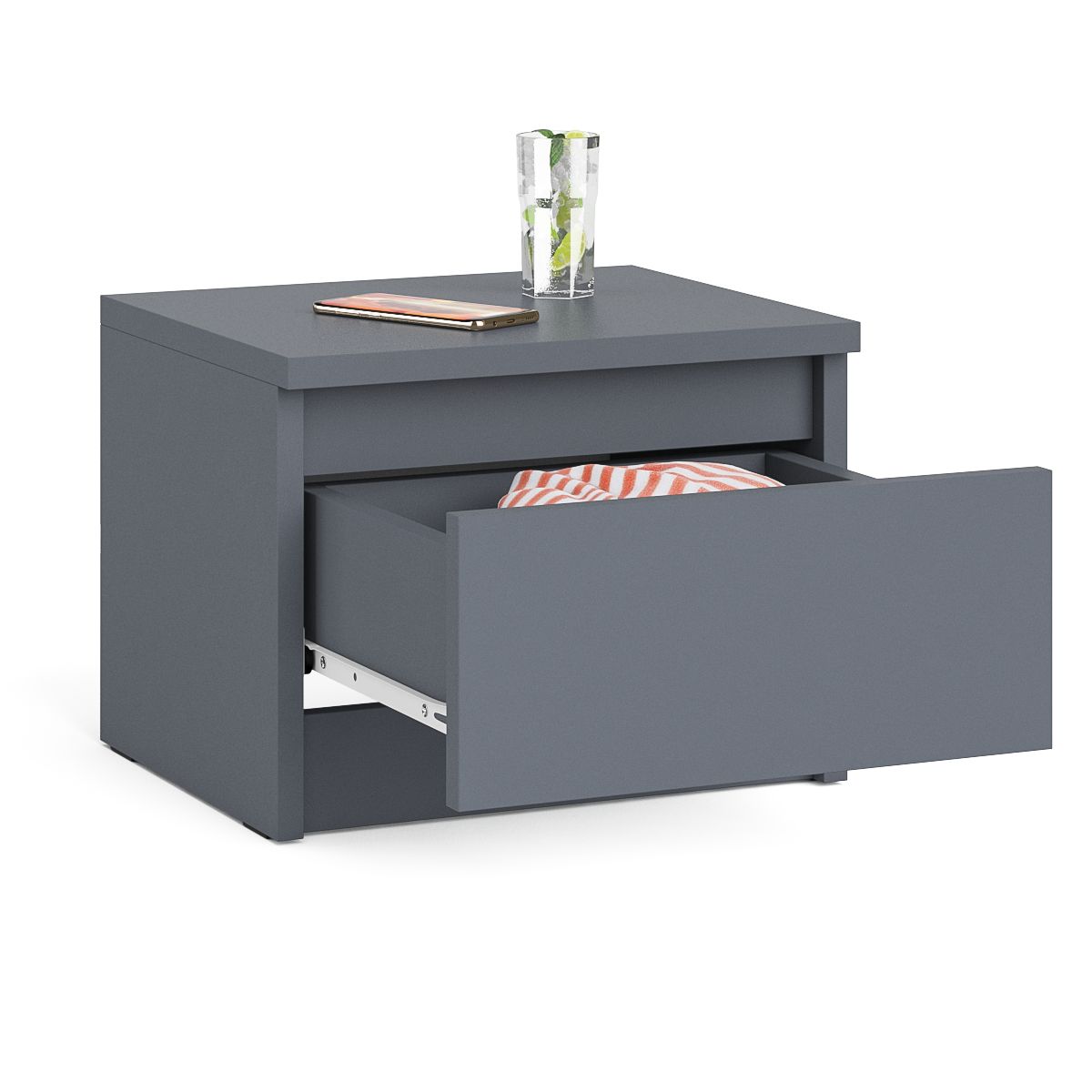 Тумба прикроватная Мори ТПМ400.1. Габариты (ШхГхВ) 40,4х34,6х30 см. Классическая тумба прикроватная с одним выдвижным ящиком на роликовых направляющих. Можно использовать и как отдельный элемент, так и в комплекте с кроватью. Отсутствие ручек главное преимущество данной модели. Роль ручек выполняют сами фасады.