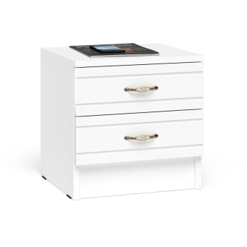 Тумба прикроватная Ручеёк. Цвет корпуса – белый. Цвет фасада – мдф белый глянец. Размер (ШхГхВ) 40х36х40 см. Практичная, компактная тумба с двумя выдвижными ящиками и чарующим дизайном – прелестный ларец для аксессуаров отдыха.