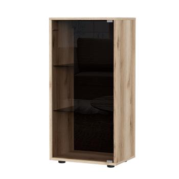 Тумба со стеклом Берген станет визитной карточкой Вашей современной гостиной в стиле лофт. Комбинация сложного древесного спила дуба орехового оттенка с тонированным стеклом выглядит строго, но в тоже время гармонично. Наполнение модуля – 2 стеклянные полки, на которых Вы с комфортом расположите сервиз, книги или памятные вещицы.