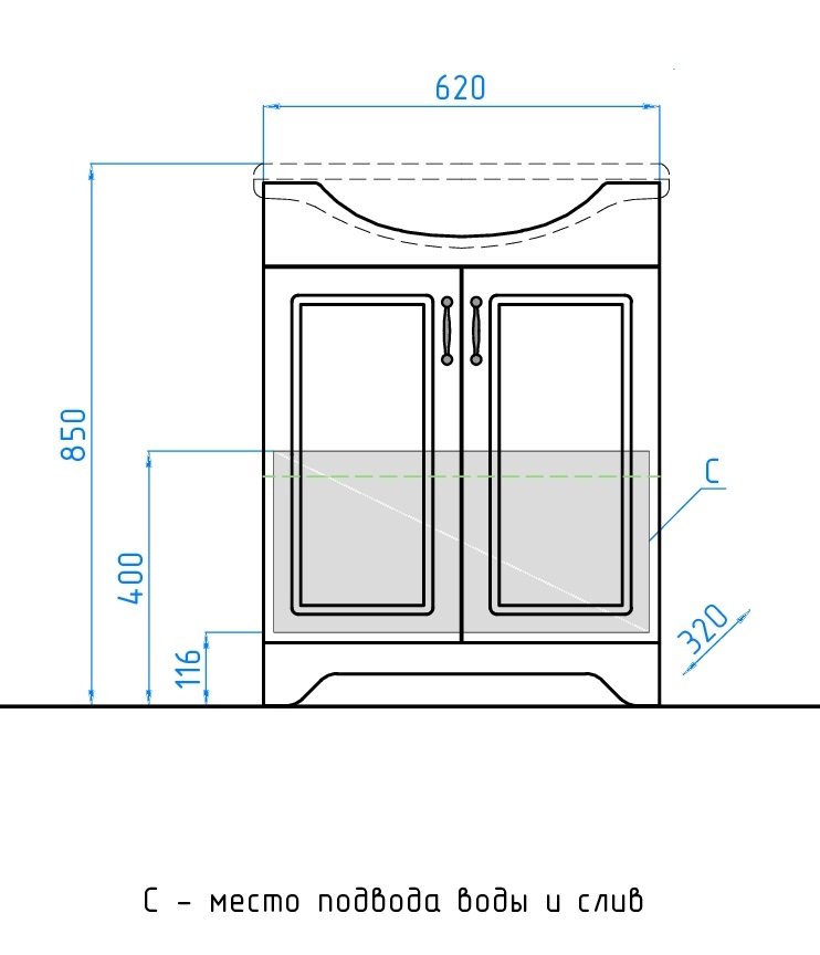 Тумба напольная (ш/г/в): 620×320×850 мм