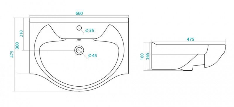 Раковина Байкал 65 (ш/г/в): 660×475×180 мм