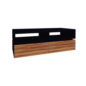 Вместительная тумба под ТВ c шириной почти 1,5 м позволит без труда разместить телевизор с диагональю до 52’‘. Специальные отверстия на столешнице тумбы помогут аккуратно спрятать клубок проводов, которая обычно сопровождает видео и аудио-зону в гостиной. В нишах под столешницей высотой 165 мм разместится вся необходимая аппаратура. Ящики выдвигаются за свес.