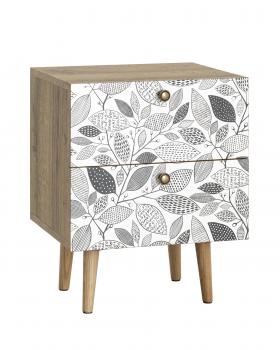 Фасады ящиков украшены принтом в спокойной гамме. Принт на фасады наносится принтером специальными УФ-чернилами. Под воздействием УФ-излучения они образуют на поверхности запечатываемого материала эластичную пленку, обладающую высокой стойкостью к воздействию солнечного света, а также погодных, механических и других факторов. Высокая эластичность таких чернил гарантирует отсутствие растрескивания и осыпания напечатанного изображения.