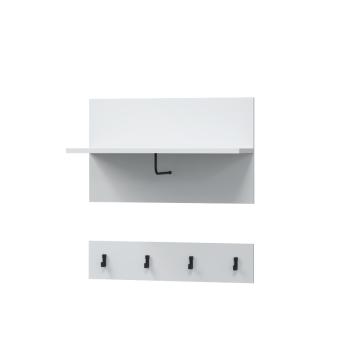 Настенная вешалка Шарлиз состоит из двух частей, на одной закреплена штанга, а на другой крючки. Модуль беспечит место хранения верхней одежды и сумок в прихожей.